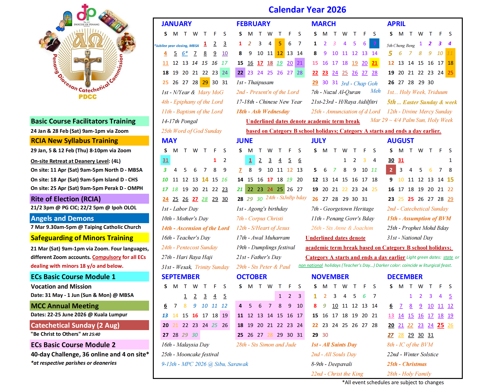 PDCC is the official body that oversees the development of Catechesis in the Diocese of Penang, Malaysia.